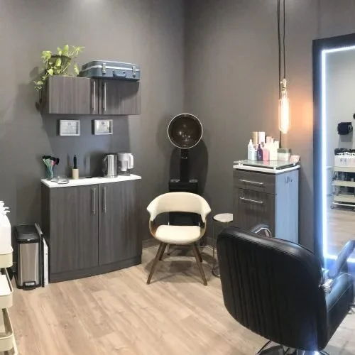Step into an upscale salon environment with high-end finishes, modern amenities, and a polished, professional feel.